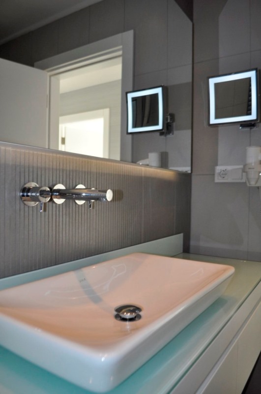 De badkamers zijn uitgerust met een glanzend en gebruiksvriendelijk design. Wastafels geplaatst op een lang wastafelblad, hangtoilet met ingebouwd spoelsysteem en ruime inloop douches.